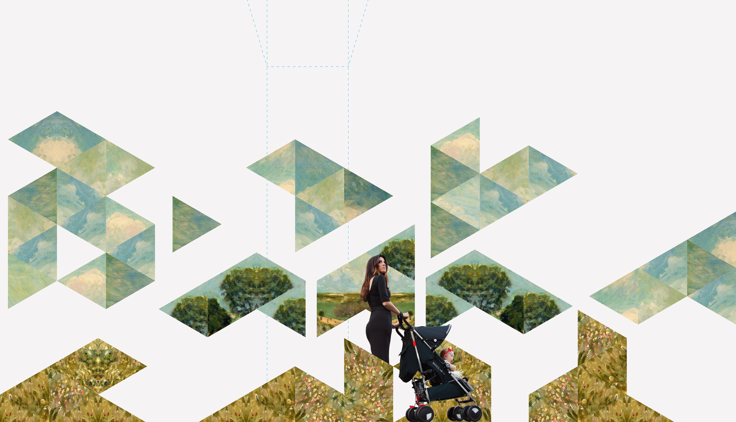 The plan was to take our remixed abstracted landscape tiles from Heritage Remixed and reconstruct them into an actual 3-dimensional landscape-set that our models can interact with in our office photo studio.