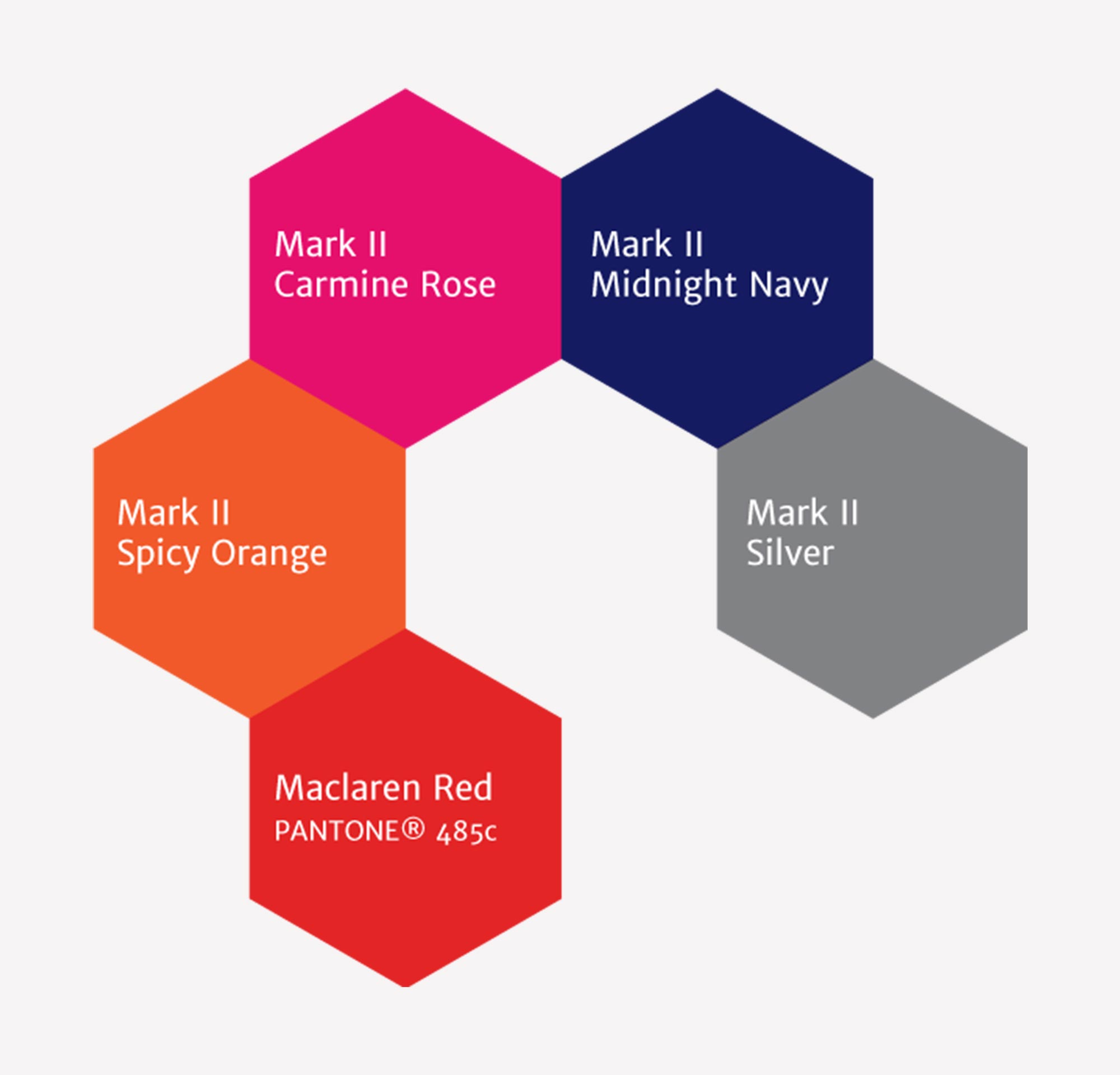 Color PaletteA Mark II color palette is comprised of the original four stroller colors along with the parent brand color Maclaren Red.
