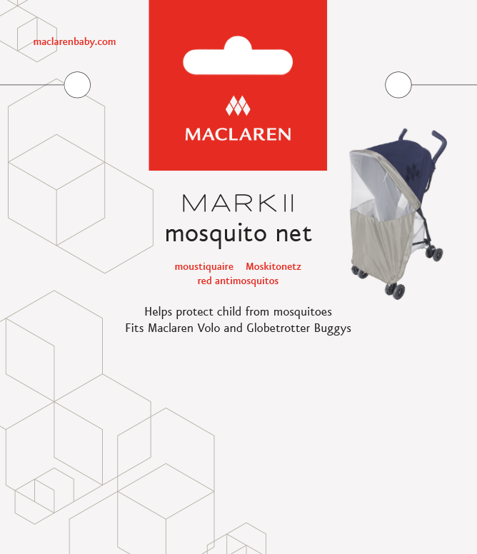 The Mark II uses the hexagonal pattern and the simplified Mark II logo to differentiate from the stark-white, clean Maclaren core packaging on the shelf.