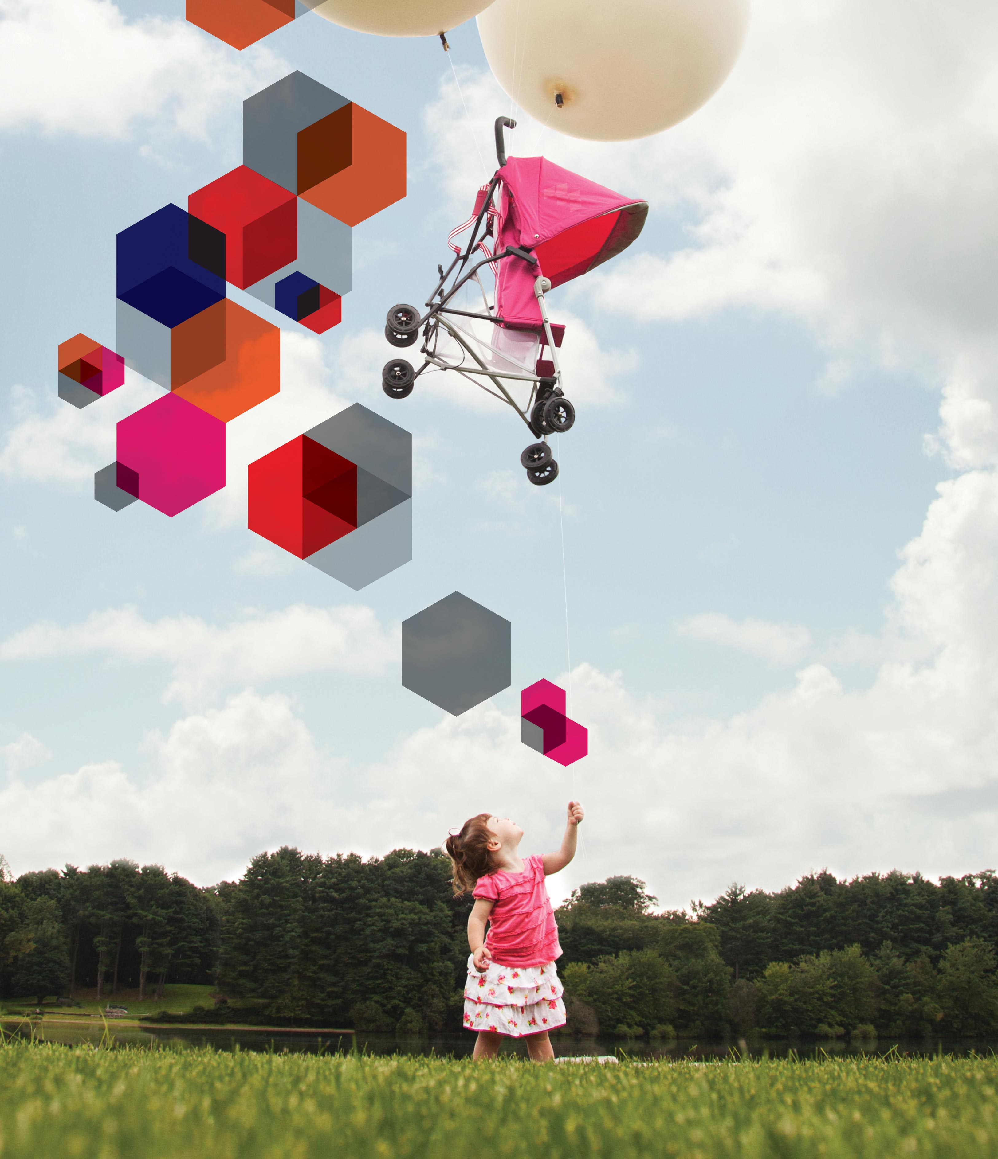 Lifestyle PhotographyA Mark II photoshoot showcasing the lightweight stroller by floating a prototype with helium filled weather balloons over the Maclaren CEO's property in Weston, CT.