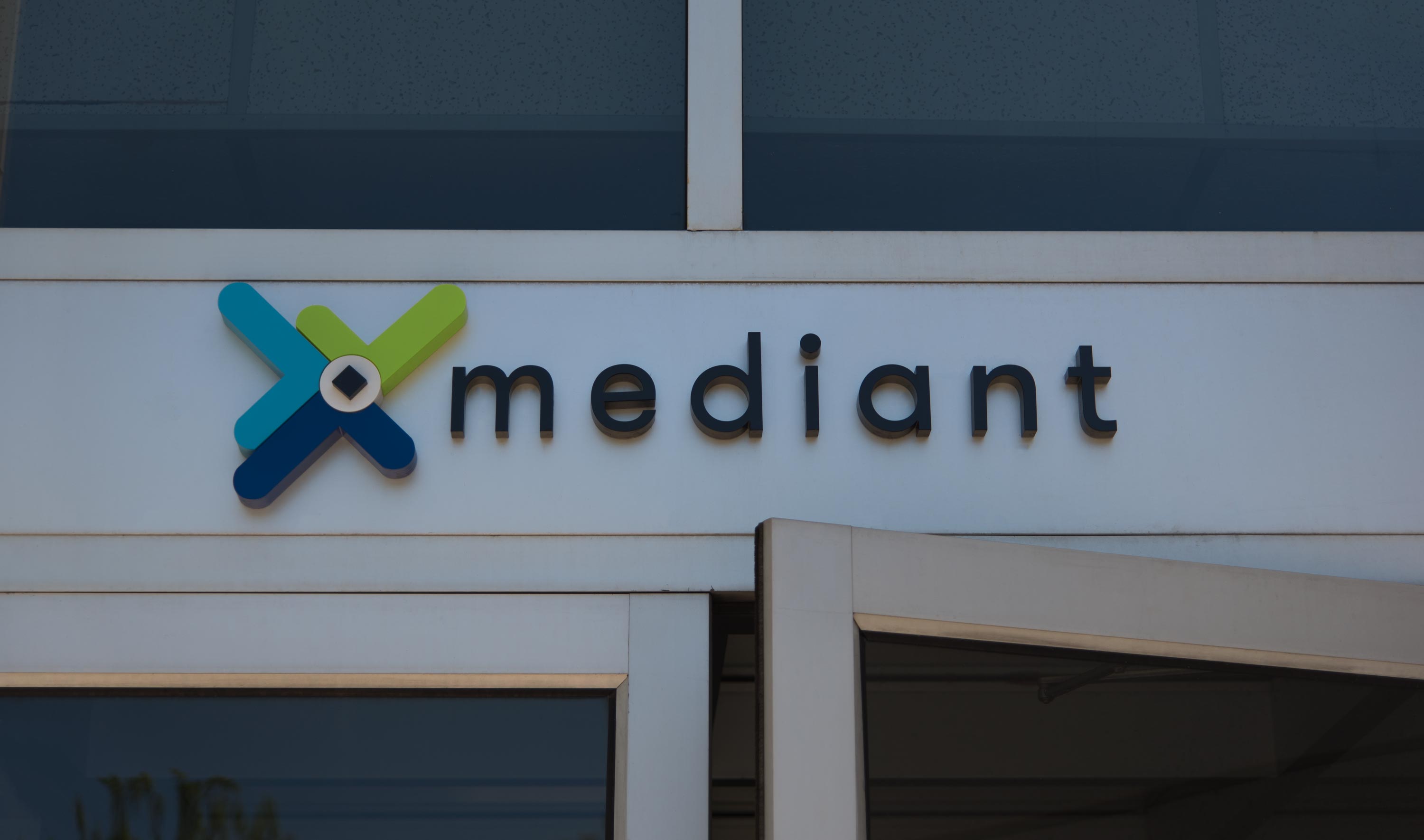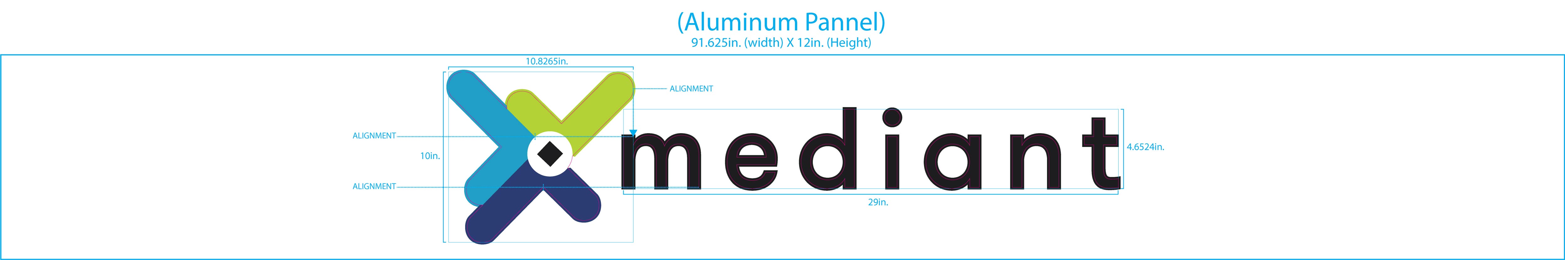 The Mediant sign itself attached to a 7.5ft(w) X 1ft(h) aluminum pannel, situated above the facilities main entrance.