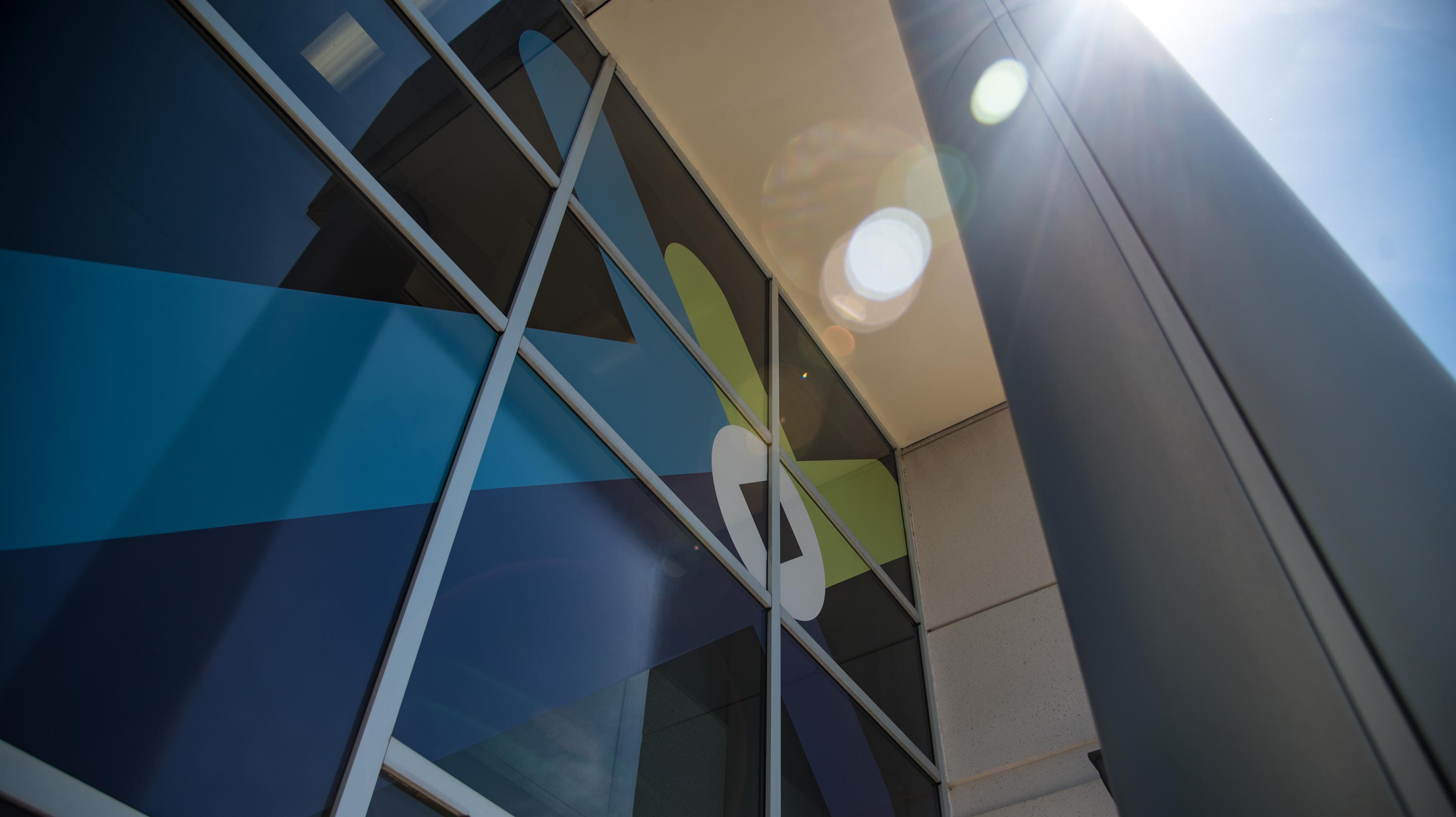 The Mediant window glass design covers 11 of the 17 entrance windows.